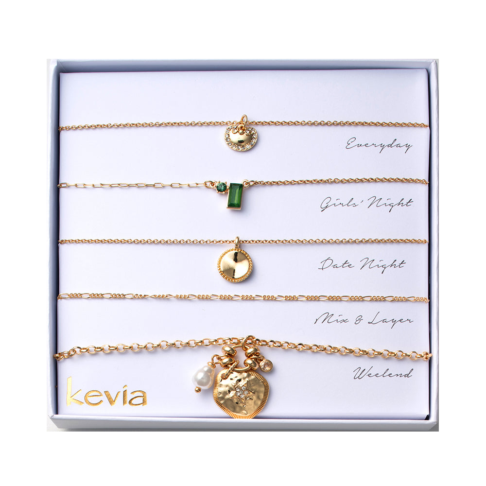 Our box set is elegantly packaged with style cues to fit any occasion, from the lovely Everyday to the sparkle of Date Night. Once you select your favorite set, mix and layer designs for endless combinations.